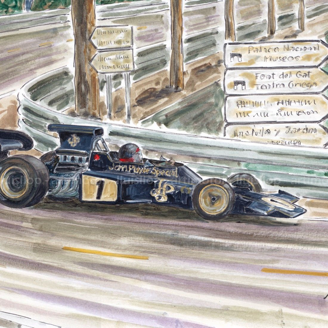 Emerson Fittipaldi Lotus 72 ganador en el GP España (Montjuic) de 1973.