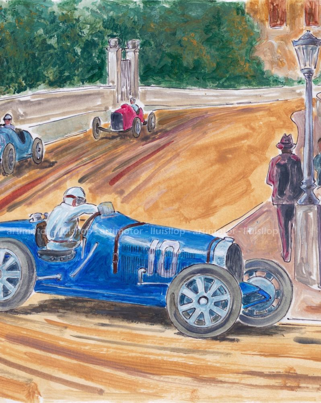 Artimotor onpaper acrílicos 23x31 - 1933 1r GP Monaco Archilla Varzi (Bugatti T51)