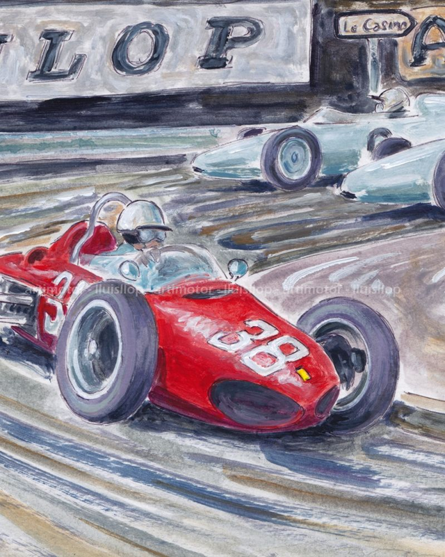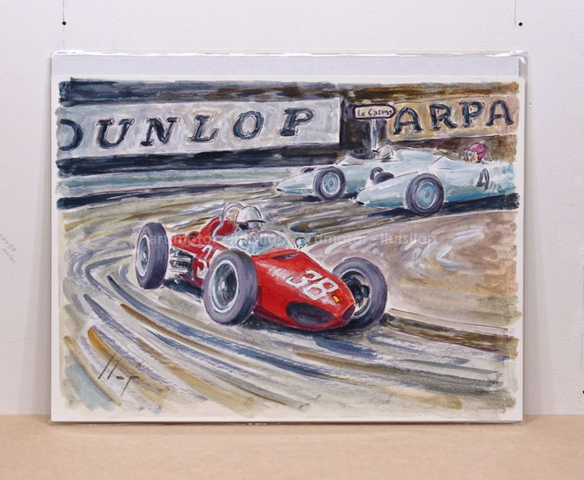 Artimotor onpaper acrílicos 23x31 - 1961 GP Monaco Phil Hill 3r (Ferrari 156) Gurney y Hermann (Porsche 787)