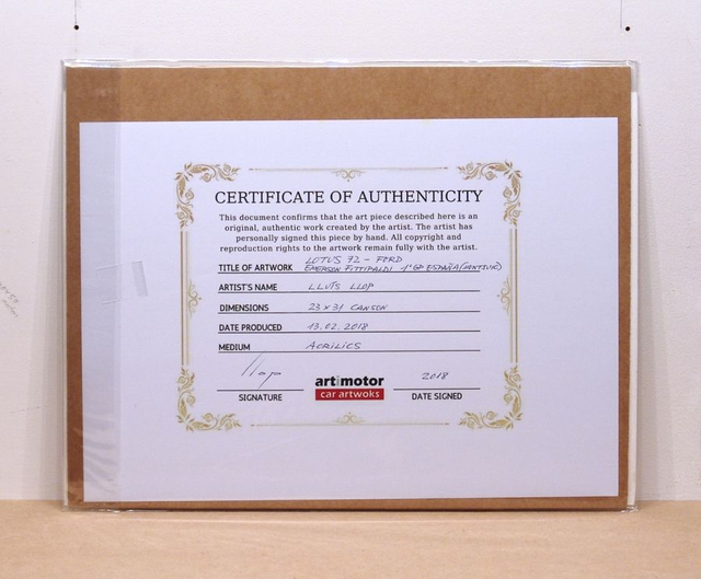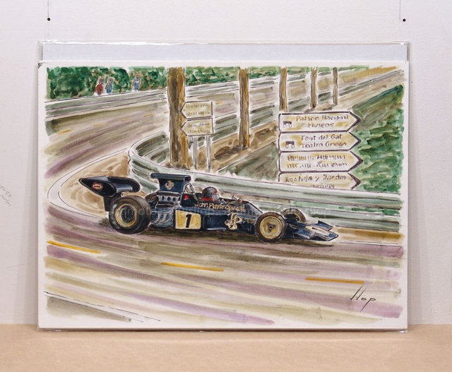 Artimotor onpaper acrílicos 23x31 - 1973 GP España (Montjuic) 1º Emerson Fittipaldi (Lotus 72-Ford)