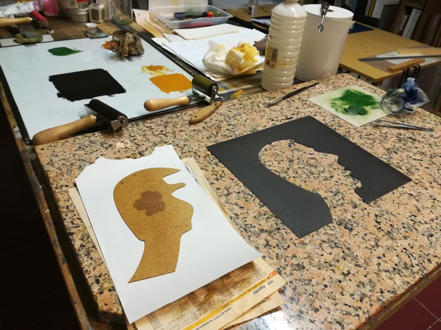 grabado calcográfico y gofrados 31x20 - "escuchando el bosque"